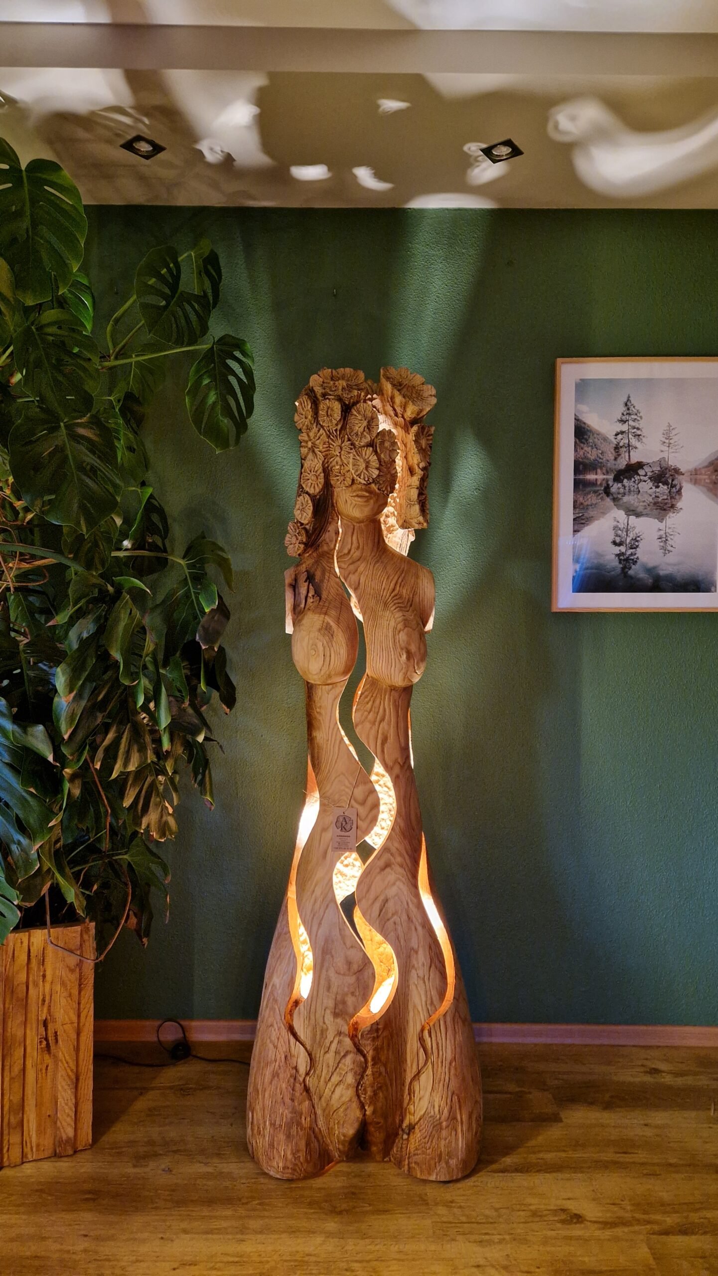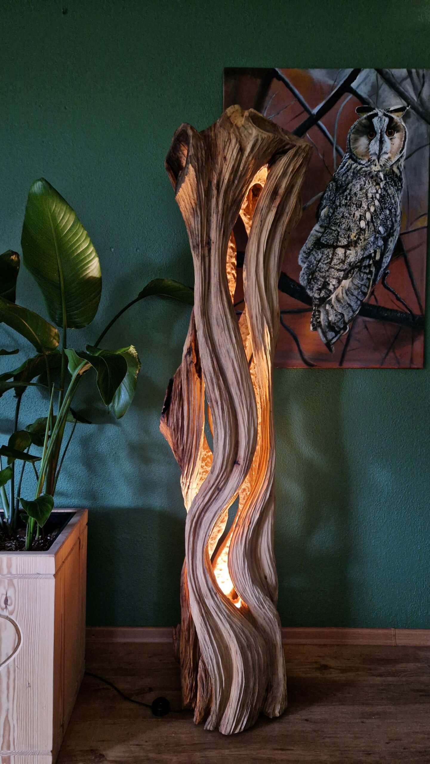 Światło wplecione w naturalne linie drewna ożywia jego kształty, tworząc niepowtarzalną grę cieni i atmosferę, której nie znajdziesz nigdzie indziej.
