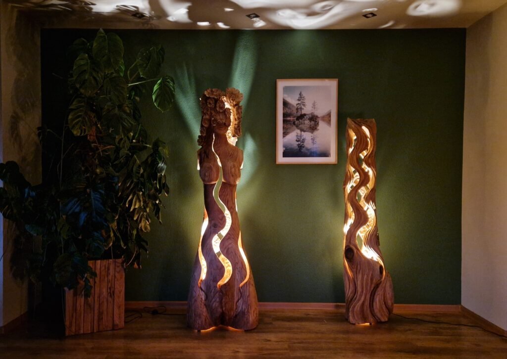 „Każda moja lampa to nie tylko źródło światła, ale prawdziwa rzeźba – unikat na skalę światową. Tworzona z dębu, drzewa o niezwykłej sile i magicznych właściwościach, staje się mostem między naturą a sztuką.