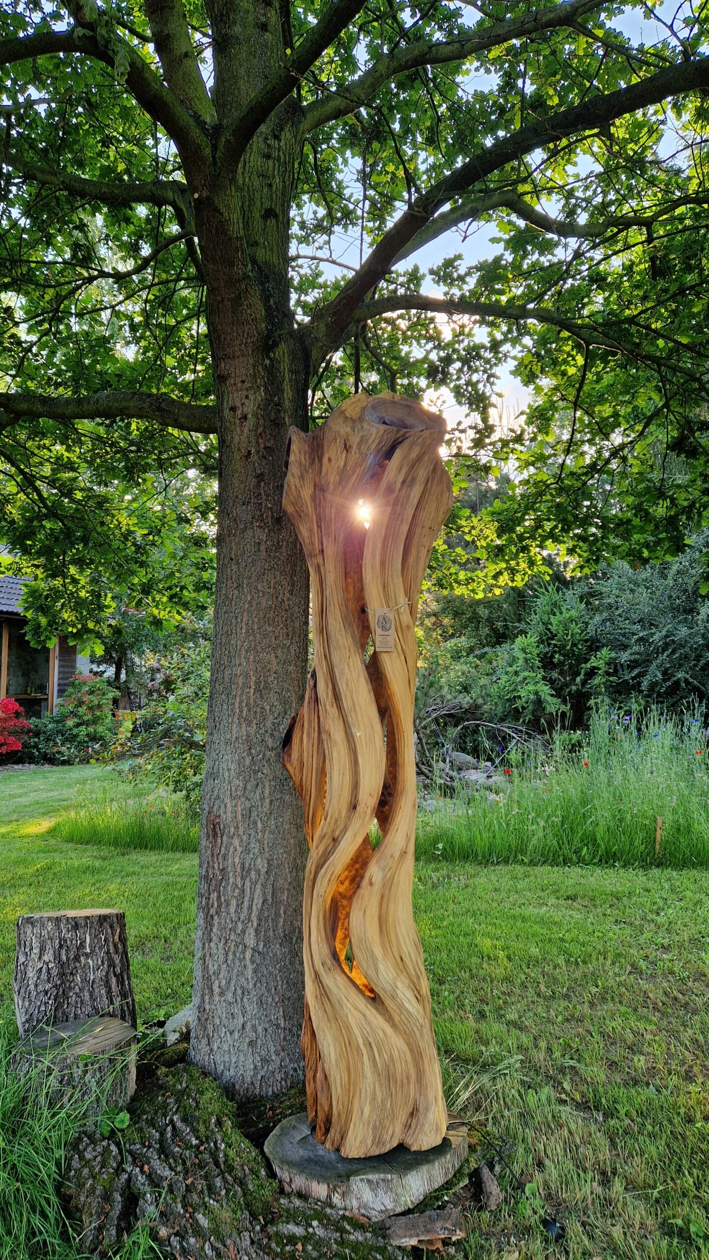 Ręcznie Rzeźbiona Lampa z Orzecha Włoskiego – Żywioł Natury i Światła